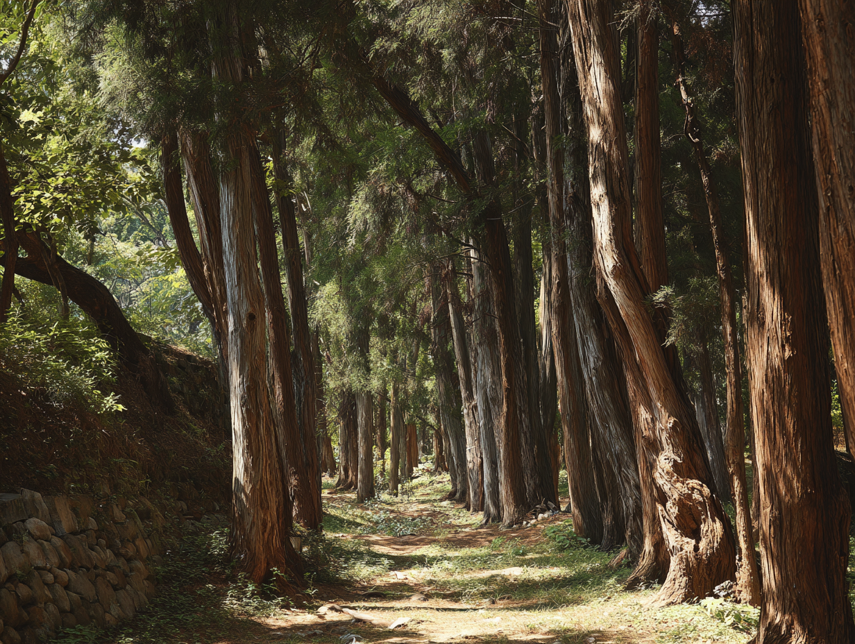 편백숲 속으로 들어가면 마치 다른 세상에 온 것 같은 기분이 들어요. 높은 편백나무들이 만들어내는 그늘 아래에서 걷는 기분은 정말 상쾌해요. 특히 여름에는 더위를 피하기에 딱 좋은 곳이랍니다.